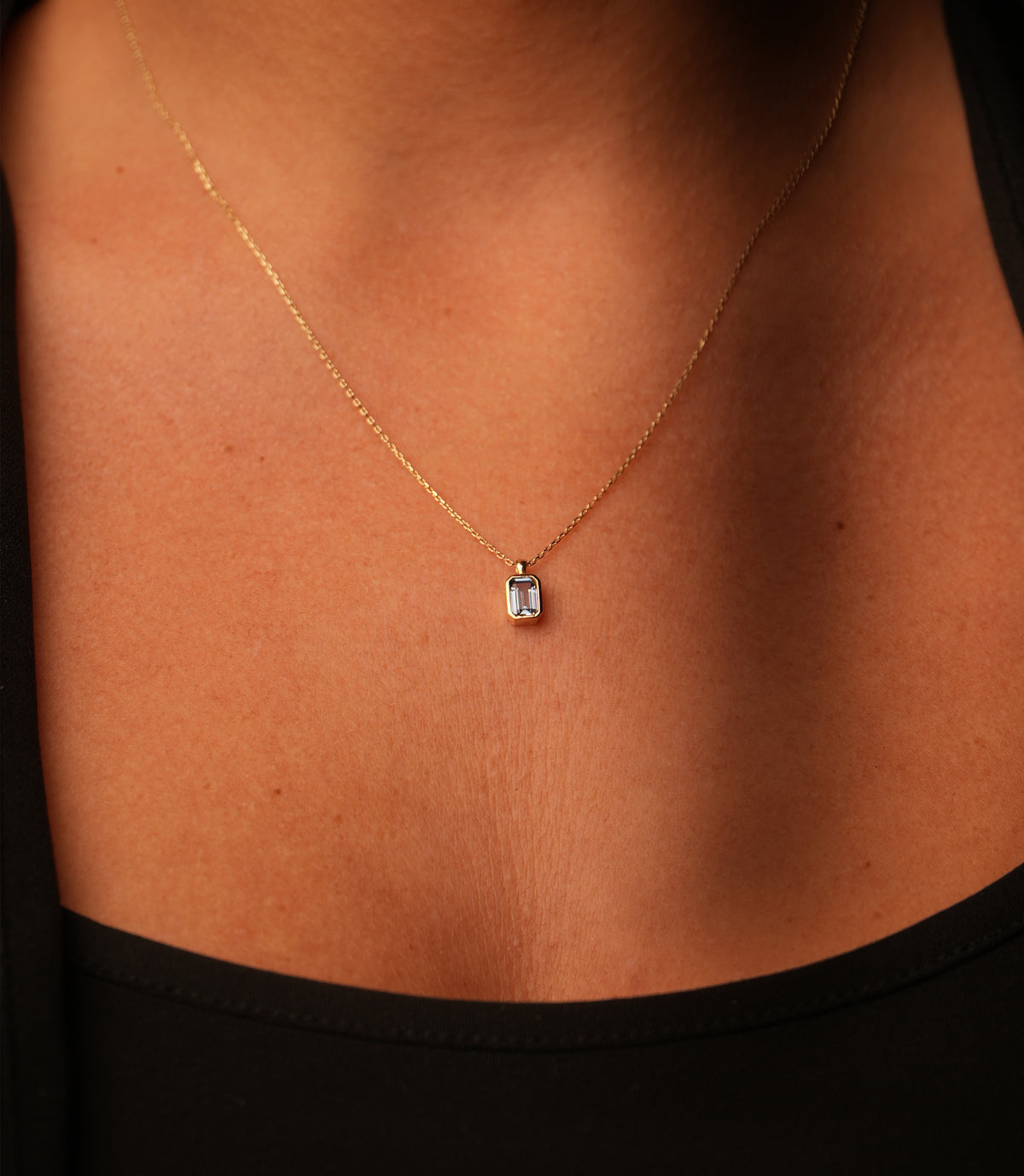 • Anhänger: Hellblauer Zirkonia im Baguette-Schliff