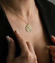 Der runde Anhänger mit funkelndem Zirkonia-Stein in der Mitte fängt das Licht aus jedem Winkel ein und sorgt für ein glanzvolles Strahlen, das jedes Outfit veredelt.