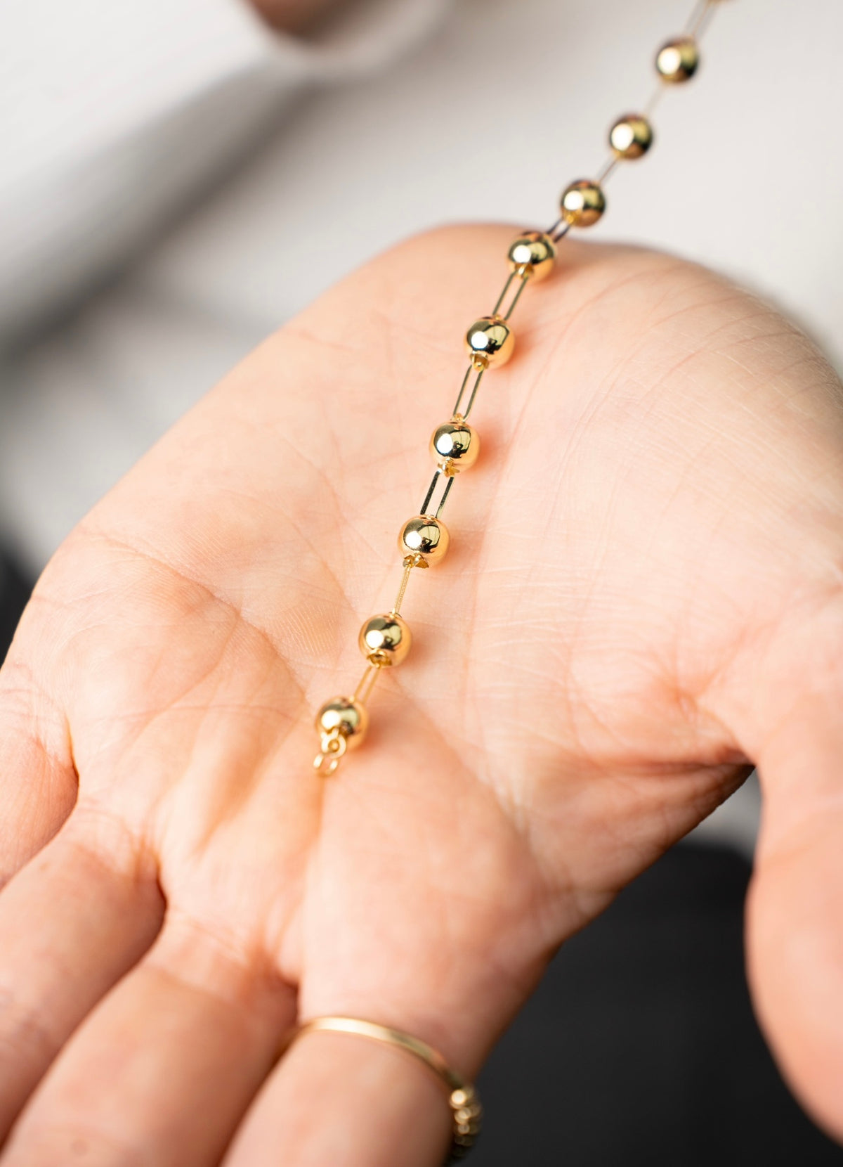 Finden Sie Ihre ideale Kettenlänge, indem Sie eine Schnur locker um Ihren Hals legen, markieren und messen.
