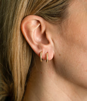 Die feine Goldfassung wird durch glitzernde Zirkonia-Steine veredelt, die bei jeder Bewegung das Licht einfangen und für ein luxuriöses Strahlen sorgen. Ob solo getragen für einen dezenten Look oder kombiniert mit weiteren Ohrringen im modernen Layering-Stil – diese Creolen sind vielseitig, stilvoll und zeitlos.