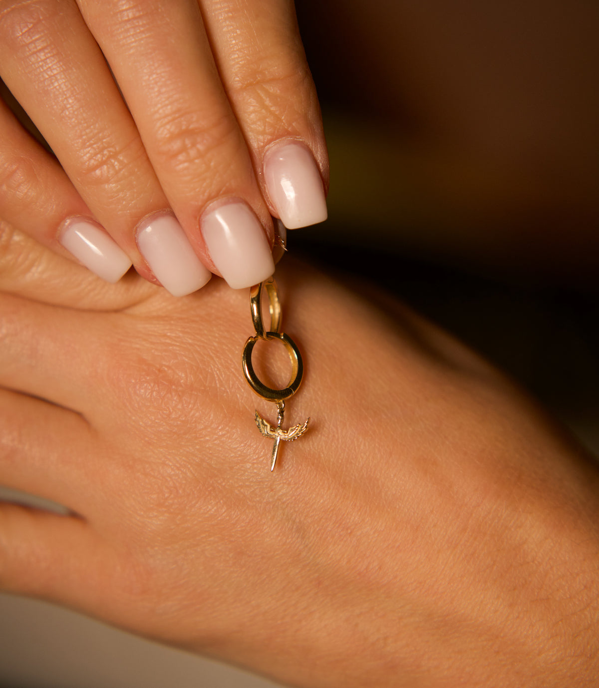 • Design: Creole mit Schwert- und Flügelanhänger (Mikail-Symbolik)