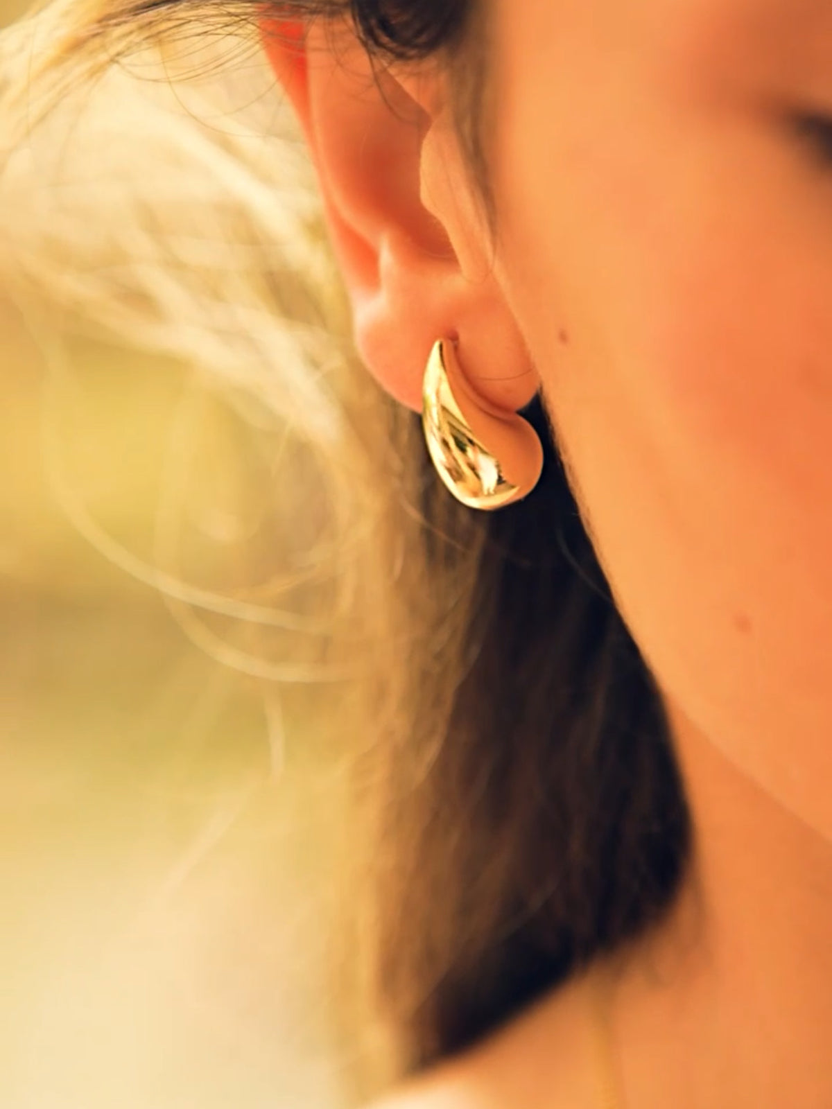 Modern, organisch und elegant: Die Tropfen Ohrringe aus edlem 585er Echtgold überzeugen mit ihrer einzigartigen Form und luxuriösen Ausstrahlung.