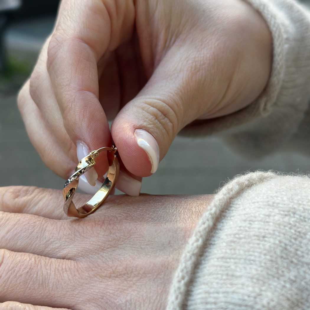 Die Twister Creolen aus edlem 585er Bicolor-Gold vereinen klassische Eleganz mit modernem Design. Ihre leicht gedrehte Form verleiht ihnen eine dynamische Note, während die Kombination aus polierten und diamantgeschliffenen Flächen für ein faszinierendes Lichtspiel sorgt.