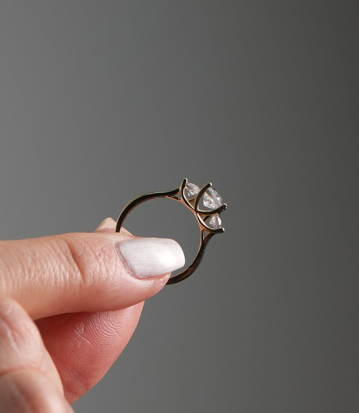• Stein: Zirkonia (Trio-Design: 1 Hauptstein + 2 Seitensteine)