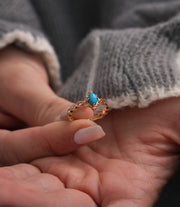 Der Majestätischer-Ring verkörpert Eleganz und die geheimnisvolle Schönheit des Meeres. Im Zentrum strahlt ein intensiver Türkisstein, kunstvoll gefasst in edlem 585er Gelbgold.