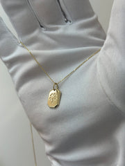 Der rechteckige Anhänger ist mit einer fein eingravierten vierblättrigen Kleeblatt-Symbolik versehen – seit Jahrhunderten bekannt als Zeichen für Glück, Hoffnung und Harmonie. Kombiniert mit der filigranen Goldkette entsteht ein luxuriöses Accessoire, das im Alltag ebenso glänzt wie zu besonderen Anlässen.